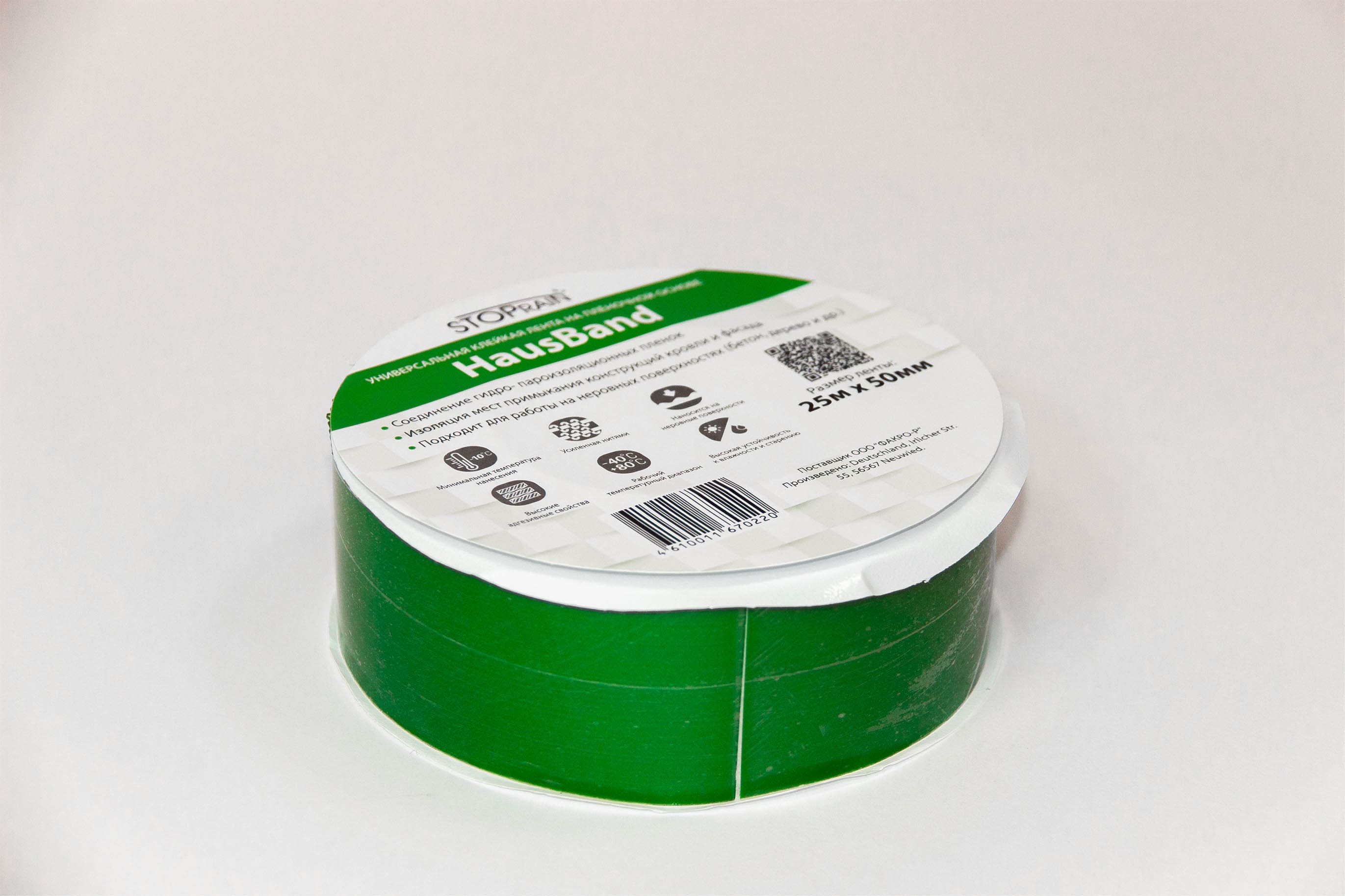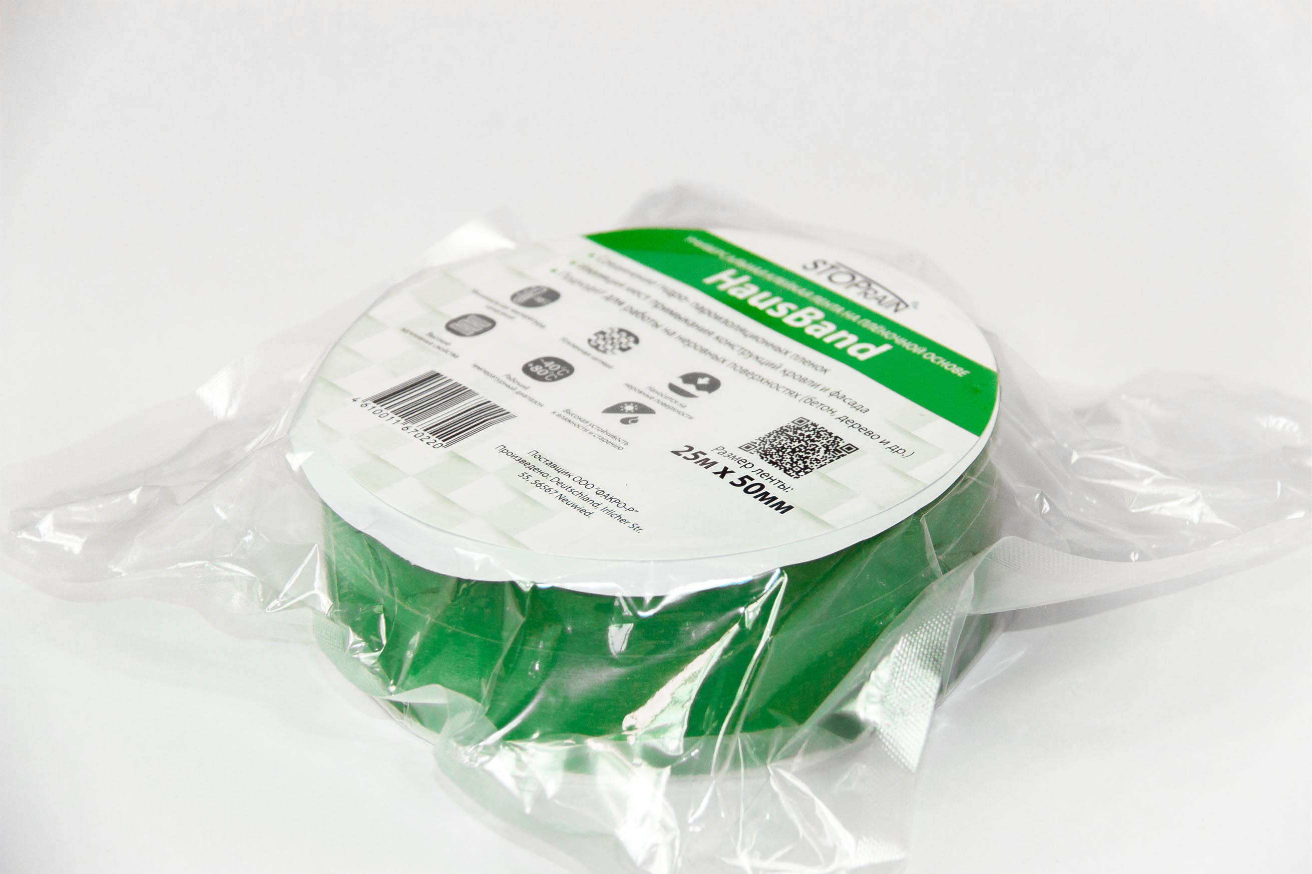 HAUSBAND (НОВИНКА) - односторонняя адгезивная лента на пленочной основе, усиленной нитями, для склейки внахлест пароизоляционных пленок и изолирующих материалов, а также изоляции на стыках потолков и стен с балками, трубами, дымоходами и прочими стоительными элементами. В зависимости от партии может быть белой или зеленой.