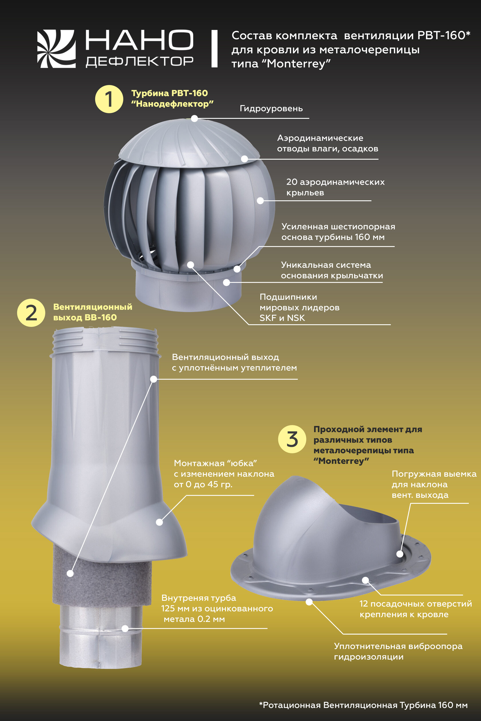 Также в наличии есть комплекты для вентиляции кровли и подкровельного