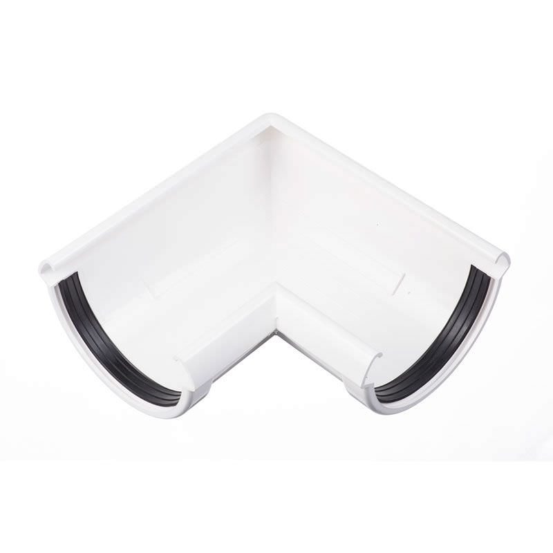 Водосточный уголок 90˚ позволяет сформировать непрерывный контур желобов, соответствующий очертаниям фасада. Изделие выполнено из долговечного пластика, используется для монтажа системы Docke Lux. Края детали имеют интегрированные уплотнительные полоски из резины, сохраняющей свойства независимо от окружающей температуры.