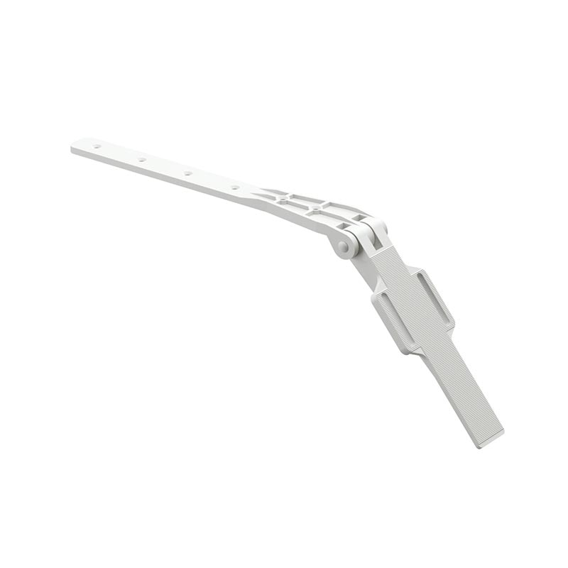 Изделие предназначено для фиксации элементов водоотводящей системы на кровлях, где отсутствует лобовая доска, а шаг обрешетки достаточно большой. Деталь выполнена из высокопрочного пластика, поэтому не подвержена влиянию влаги или грибка. Подвижная часть позволяет приспособить крепление к углу наклона крыши.